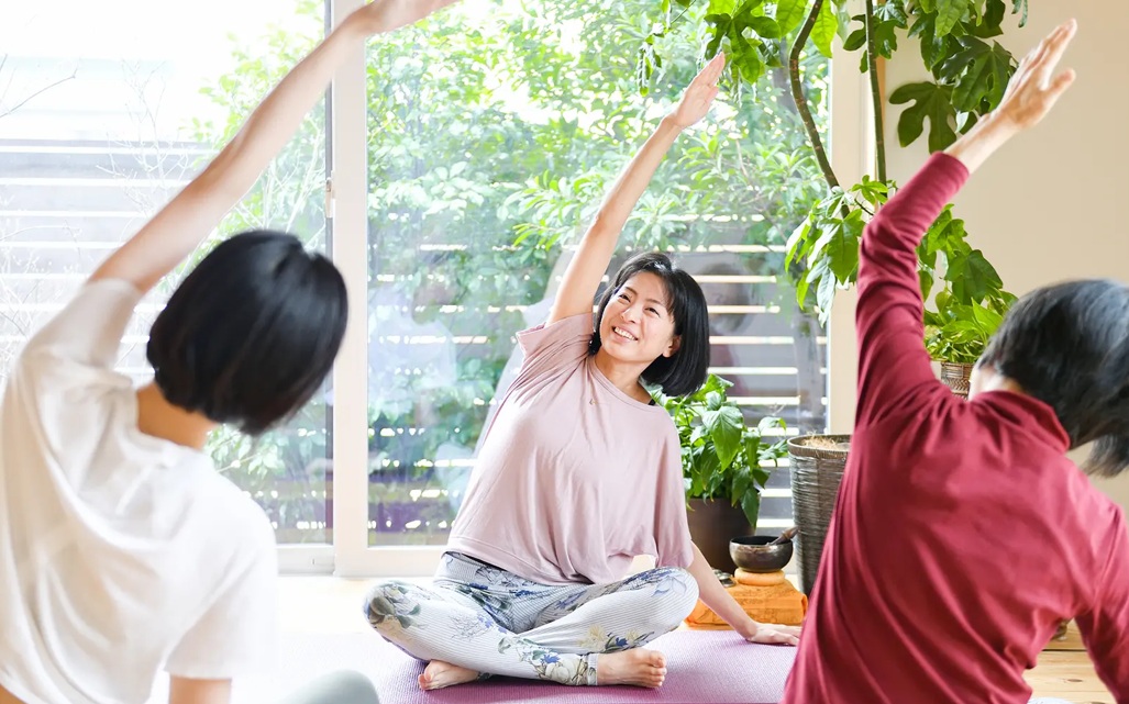 講師には豊橋市のヨガスタジオ「Seeds yoga」より中島ちあき先生をお迎えし、呼吸法やストレッチを中心としたリラックスプログラムを体験しました。